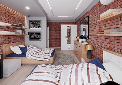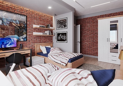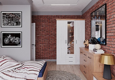 - Мебель выполнена в цвете «дуб бунратти», имитирующем натуральное дерево;