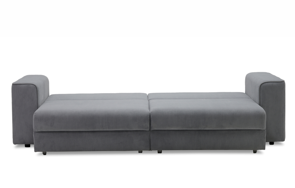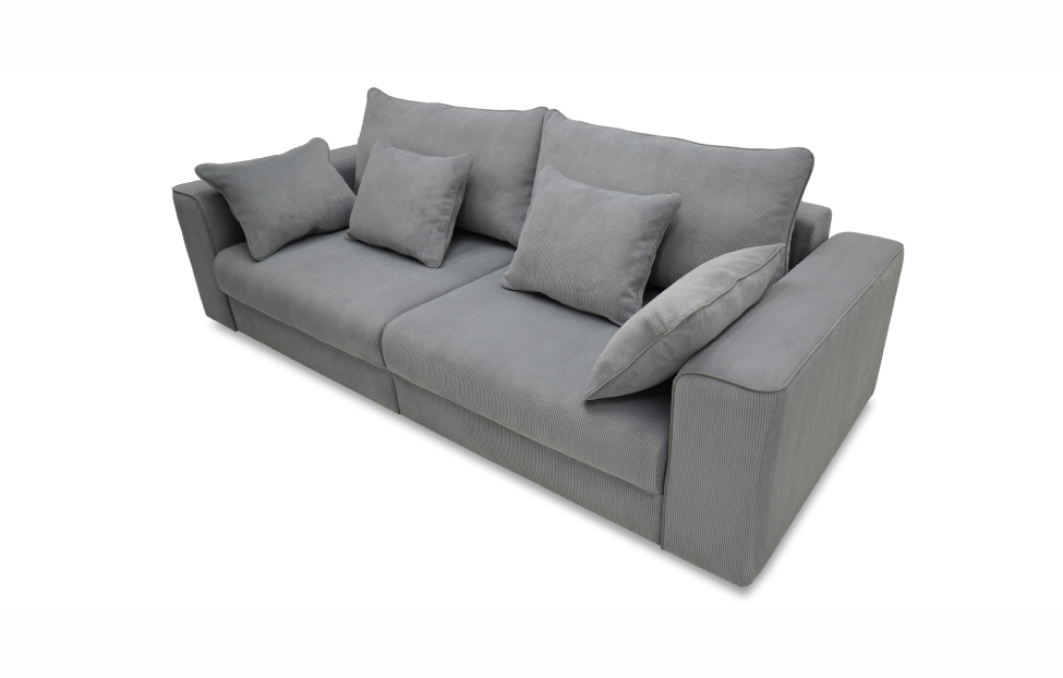Диван выполнен в современном стиле, который будет гармонично смотреться в любом интерьере. Обивка из велюра c вертикальной текстурой актуального серого оттенка приятна на ощупь и легко чистится.